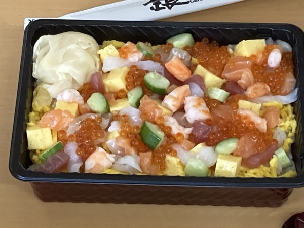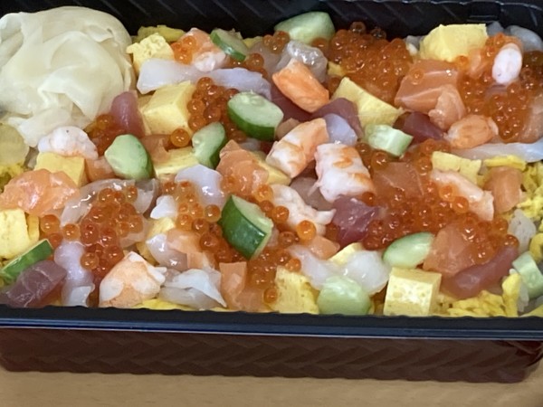施設では、あまり食べれない特別に海鮮ばらちらし寿司重が提供されました。