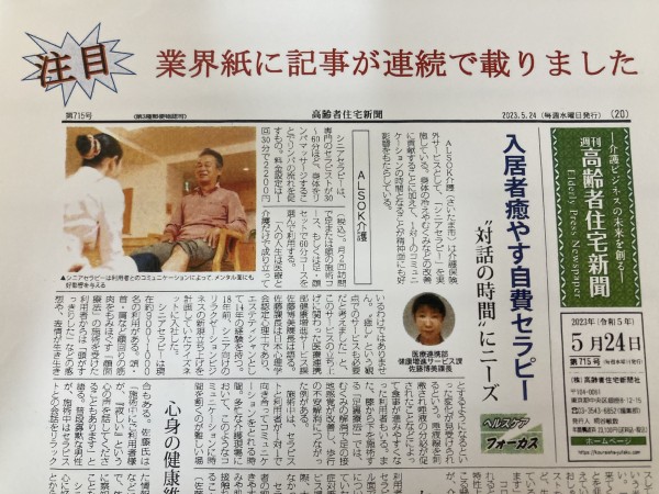 週刊高齢者住宅新聞にて入居者癒す自費セラピー