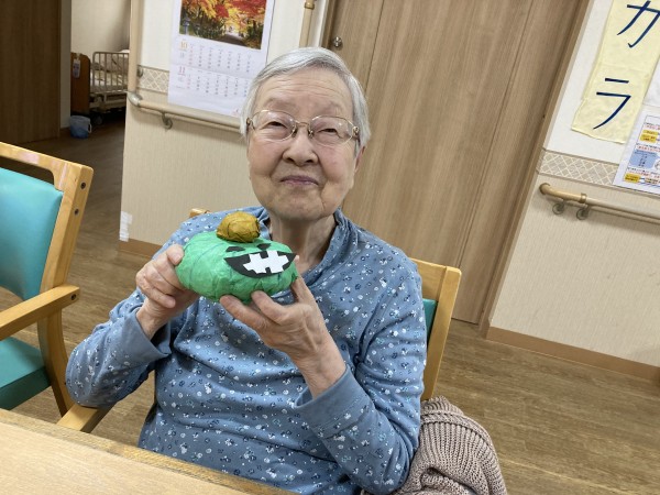 お花紙を重ねて、色々な顔のカボチャを作っていただきました。