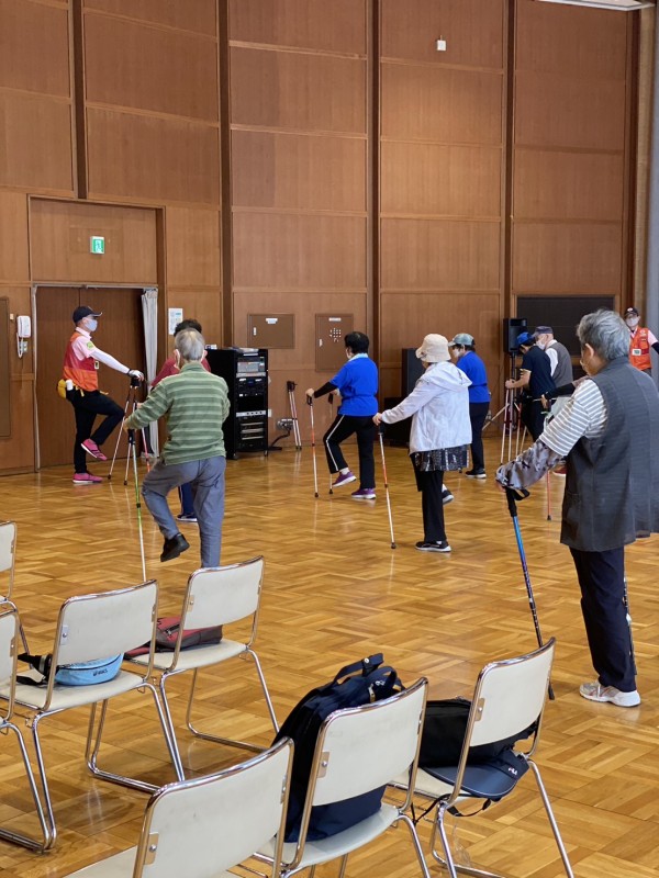 NORDICむねおかの方からノルディックウォーキングの指導を受け