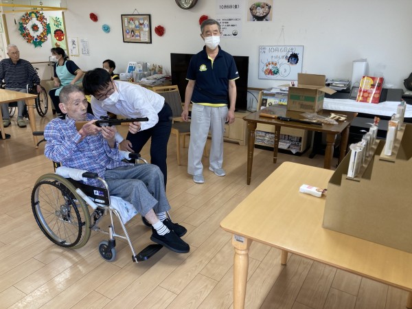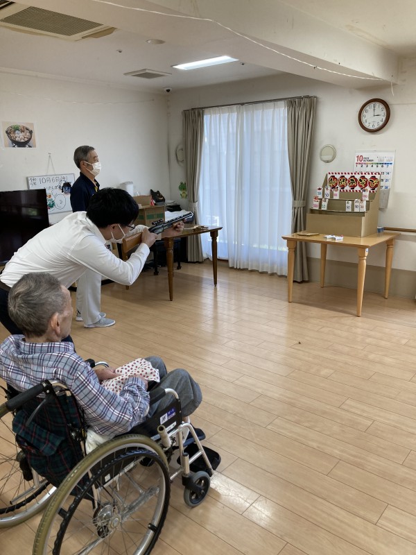 ★☆[秋祭り]射的輪投げレクリエーション高得点目指し①階2023年✨ 『みんなの家-三橋6丁目-介護ブログ』☆★