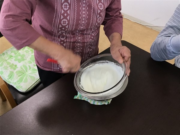 ちょうど見学に来て下さった方もお料理がお好きだそうで、泡立てるのを手伝って下さってとても助かりました☆