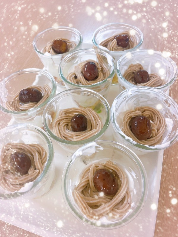 H子様とS子様は甘栗と生クリームをブレンダーで混ぜてマロンクリームを作り飾り付けて下さいました。