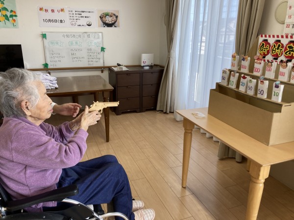 ★☆[秋祭り]射的輪投げレクリエーション高得点目指し③階2023年✨ 『みんなの家-三橋6丁目-介護ブログ』☆★