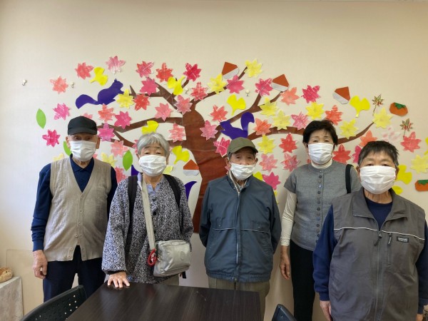 せせらぎ前でのラジオ体操後、5名のボランティアの方々にご協力いただき、11月の壁面の飾り付けを行いました。