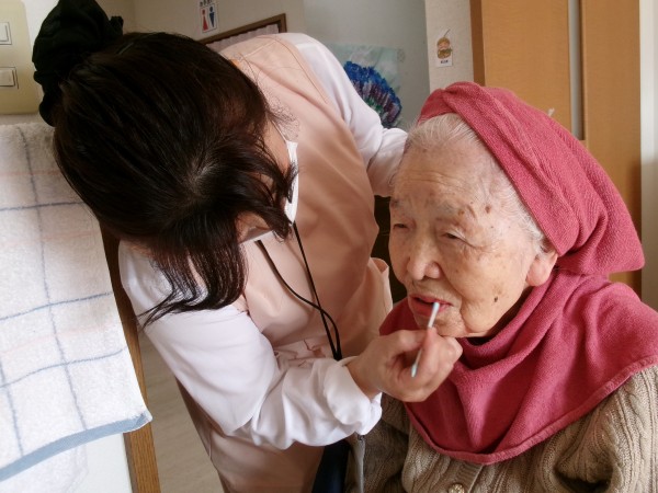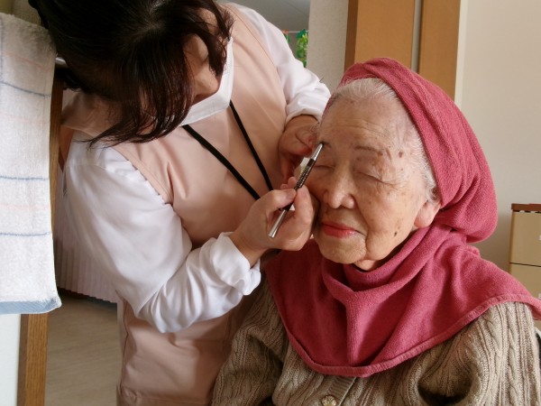 3. シニアセラピー癒しの時間~フェイスマッサージ編~口紅、眉を少し書いて、チークもほんのり~
