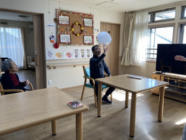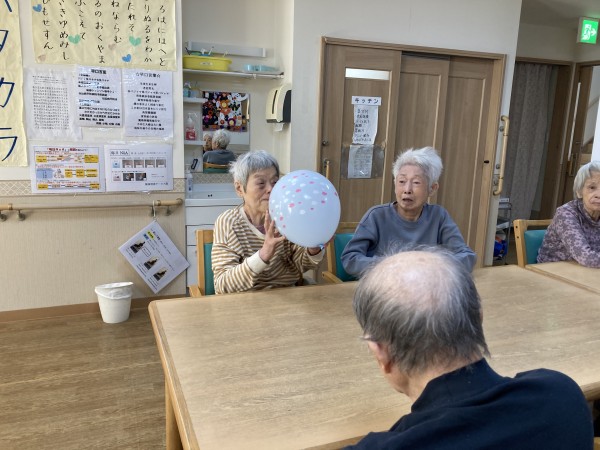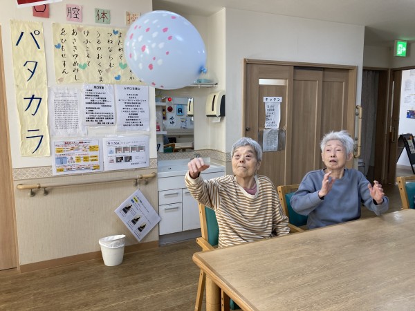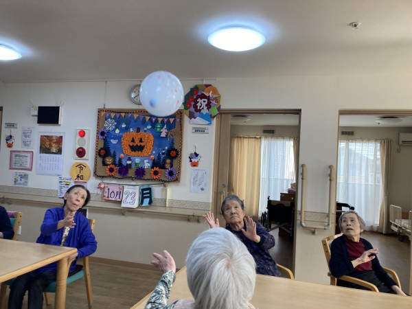 各フロアで風船バレーの練習をしていただきました。