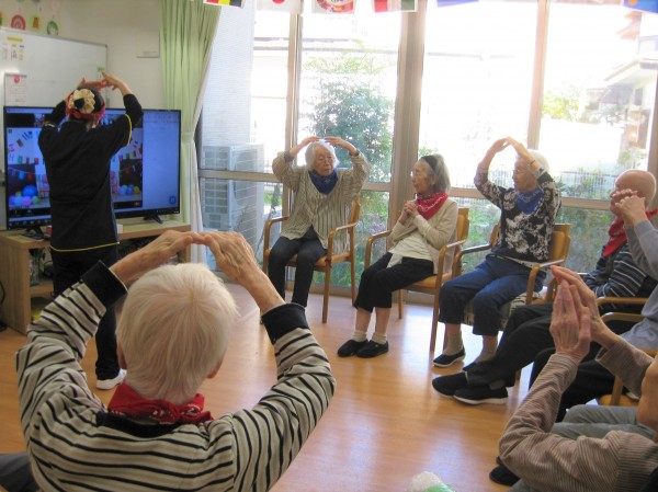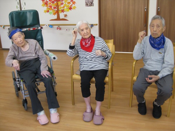 張り切って準備体操され筋肉をほぐされています(*^。^*) ニコニコされ頑張っています!(^^)! 声も出ていますね!!