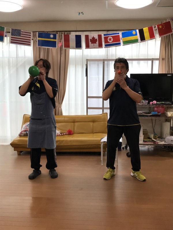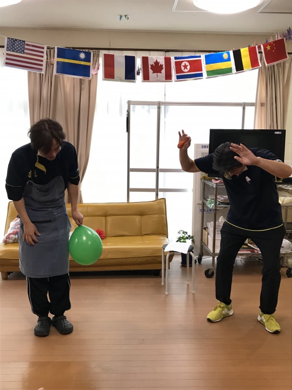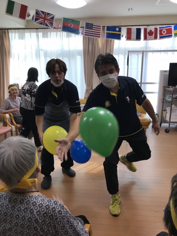 競技①旗上げの後は 競技②風船バレー!(^^)!