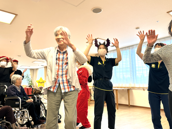 続いて、あのマイケルジャクソンで有名な「スリラー」を職員と皆さんで踊りました。
