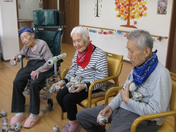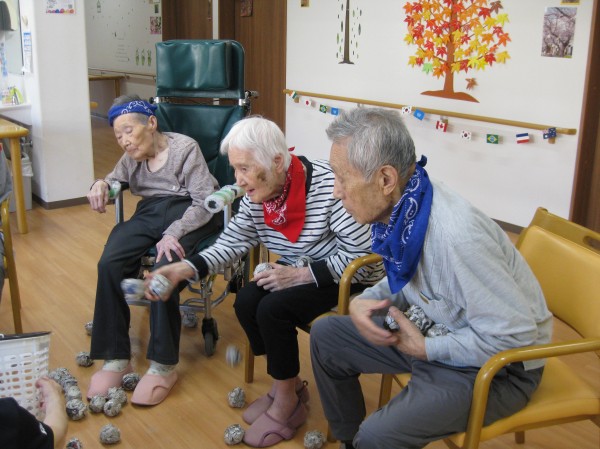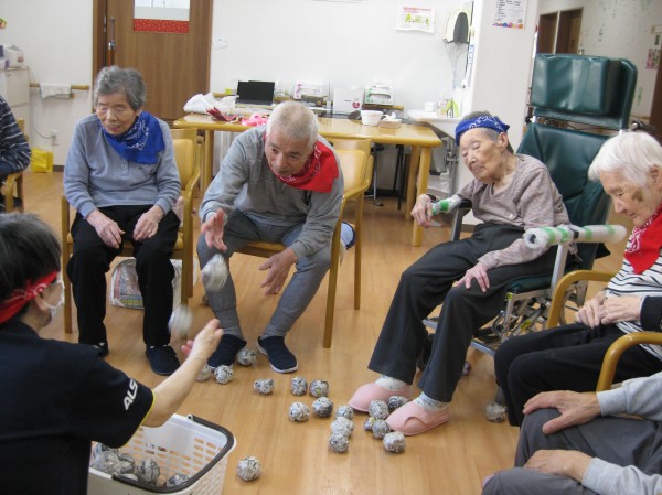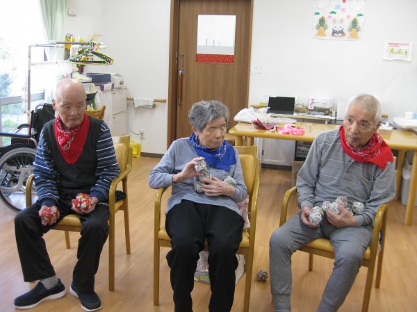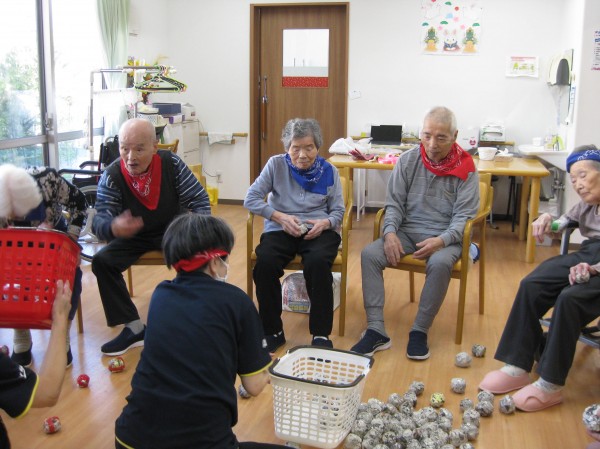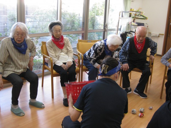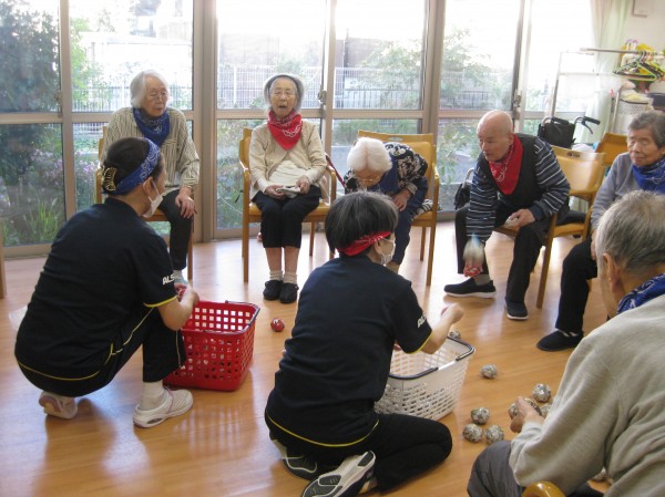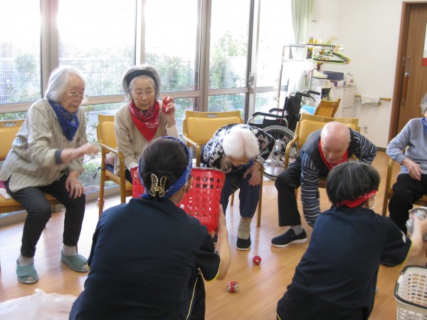 運動会の定番の玉入れです!(^^)! 音楽に合わせて籠に玉を入れていました! みなさま楽しまれていました(*^_^*)