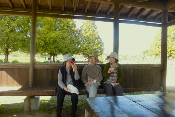 コスモス見学の後は東屋で一休憩。