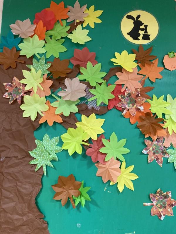 今日は壁画を秋らしく飾り付けしました。