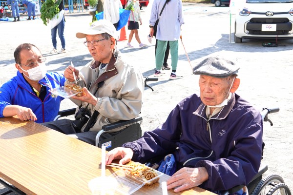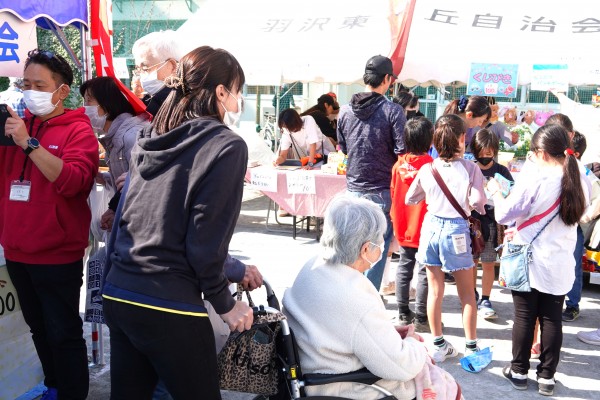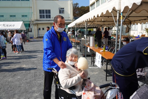 近くの小学校でダンスやブラスバンドの演奏を見ながら、出店を回り美味しいものを皆でいただきました。