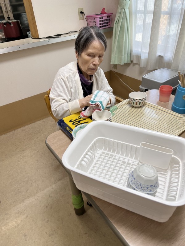 できる部分での色々なお手伝いを通して、日常生活場面においてご自分の役割を持てるよう支援しています。