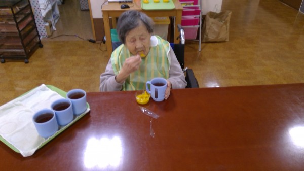 おやつには、「かぼちゃプリン」を召し上がって頂きました。