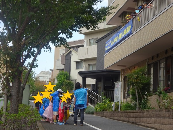 ★こちら保育園前・・・子供たち集合です★