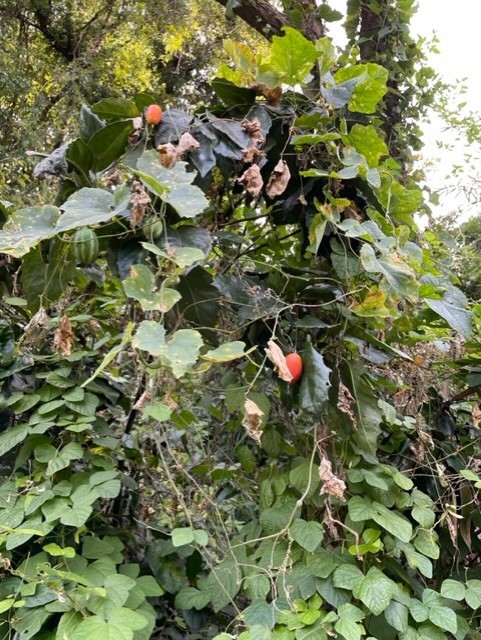 何の実かお尋ねしてみると「なんだろ…なんとかカズラかなぁ」「わからないわぁ~」等みなさまも見たことないご様子…