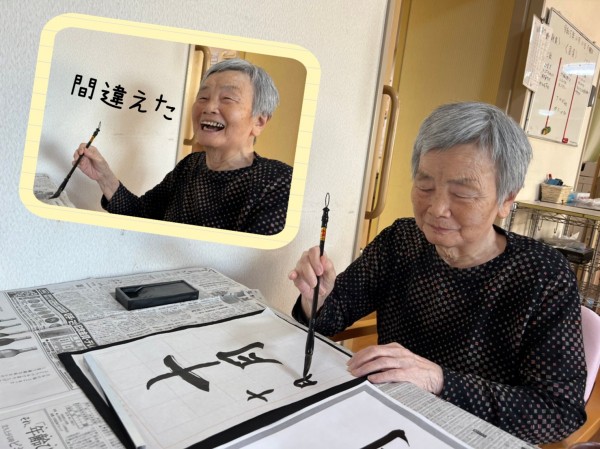 いつも、朗らか笑顔の100歳様は、書す時も笑顔。