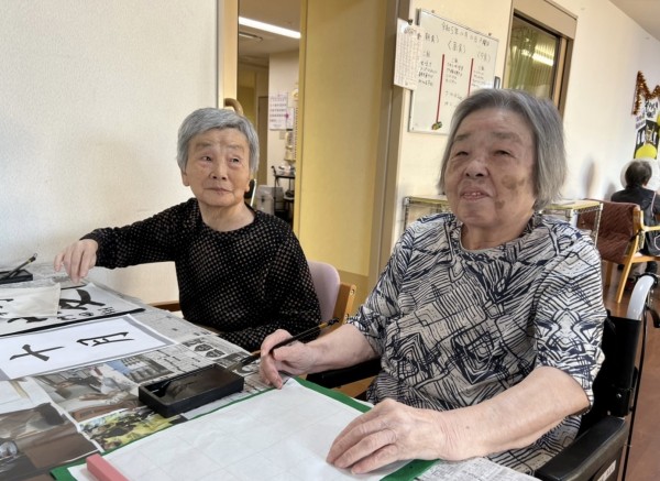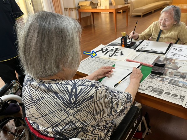 こちらのテーブルでも書道の真っ最中。