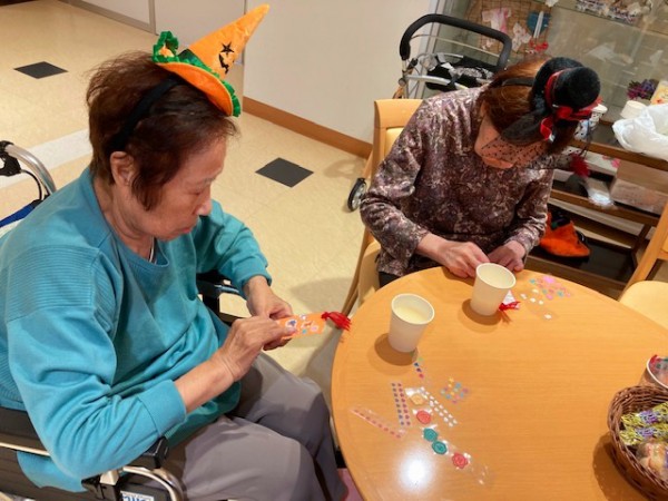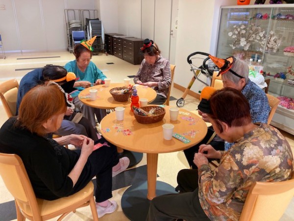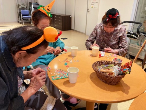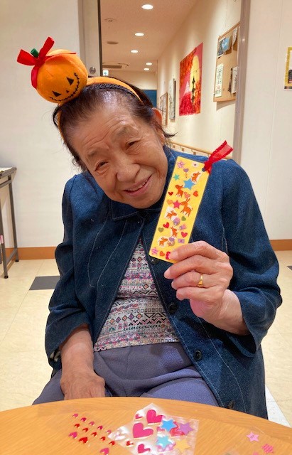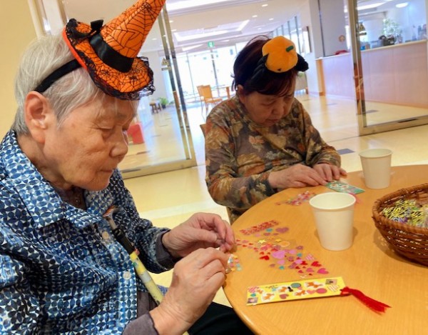 ご入居者様と、お茶菓子を楽しみながらしおり作りをいたしました♪