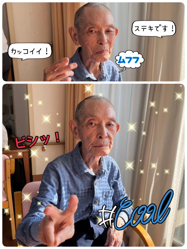でも、ビシッ!とキメ顔でポーズ!