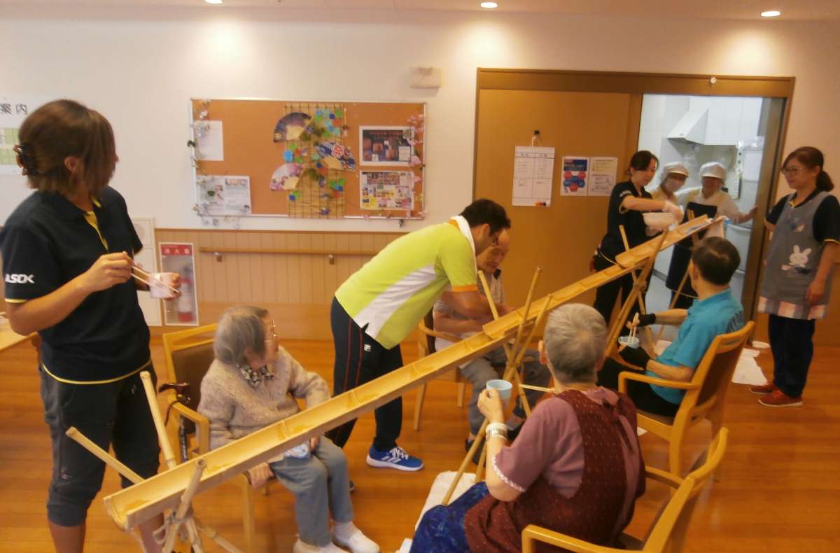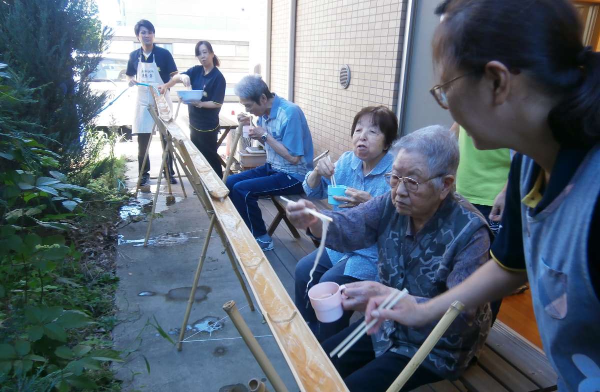 本日、食事イベントの一環として、「流しそうめん」を実施しました!!