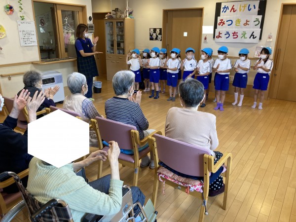 園児達の歌声に思わず笑顔になって、皆さん手拍子で応援しています。