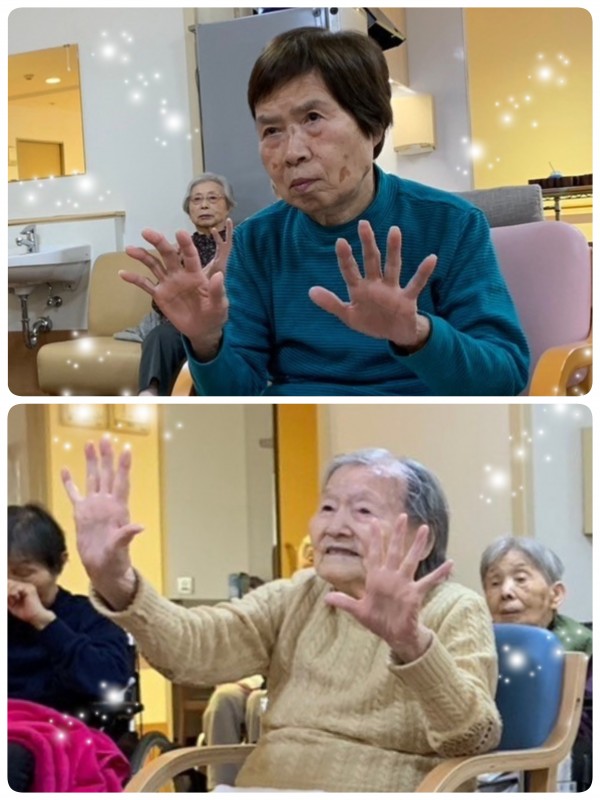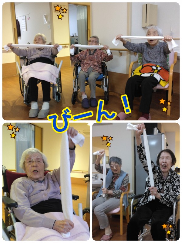 タオルを結ぶのを、お手伝いしてくださる103才様。