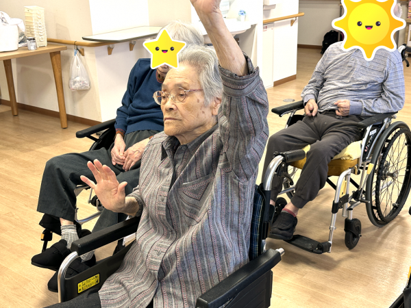 終盤に差し掛かると音楽に合わせてそれぞれできる範囲で体を動かしていただきました。