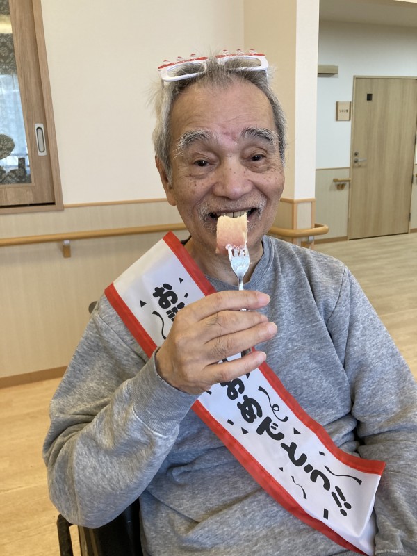 その後は他入居者様達と一緒に、バースデーケーキを召し上がって頂きました。
