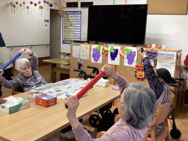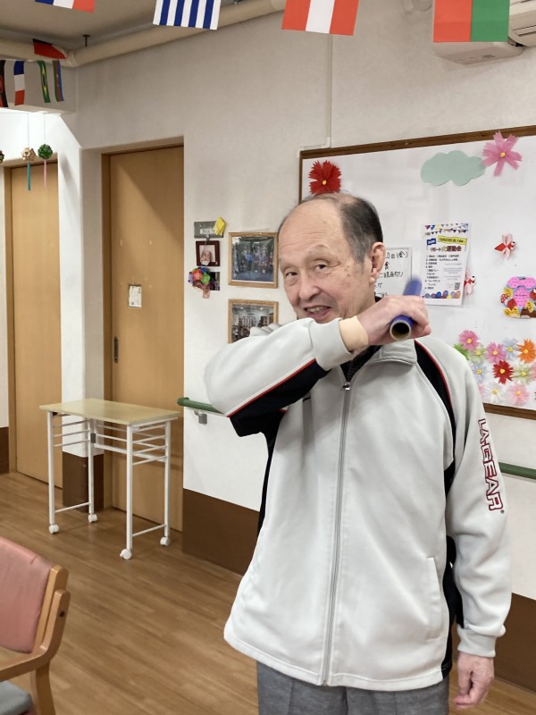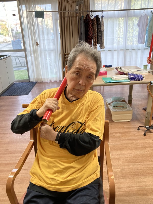 棒を使って、手や腕の運動が