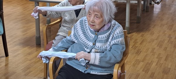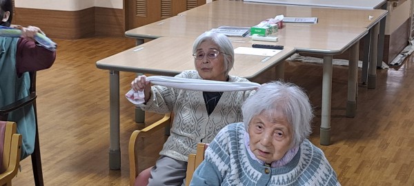 「体が柔らかくなりました。とても楽しいですね」と仰られ、とても笑顔溢れるリモート体操のお時間を