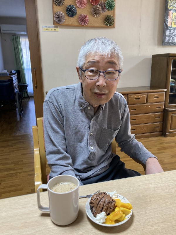 本人リクエストでチョコのケーキ・マンゴー添え。