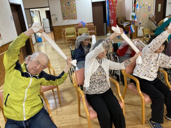 皆様、タオルを使って無理なく楽しく身体を動かしていました♪