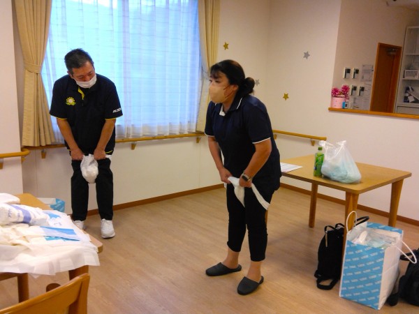 オムツ交換に不安を持っている職員も実際に現場にて指導していただけるため