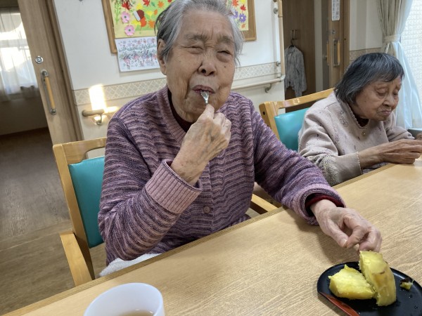 ホームの畑でとれたサツマイモをふかしておやつに召し上がっていただきました。