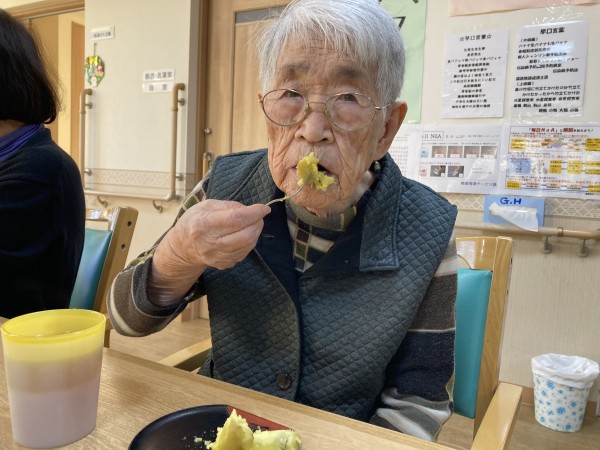 しっとり甘いお芋に「おいしいね」と笑顔で答えて下さいました。
