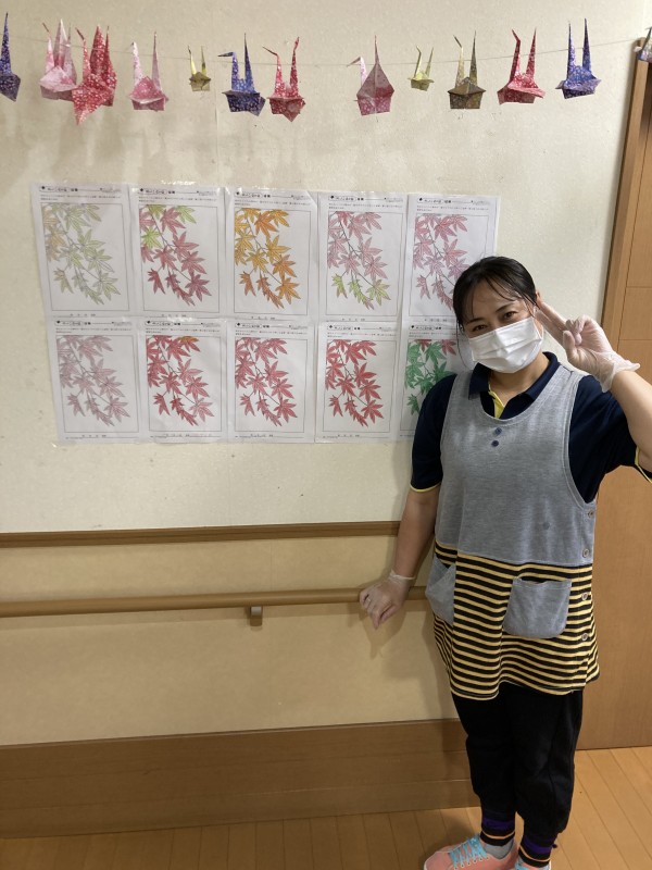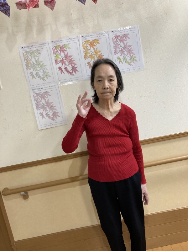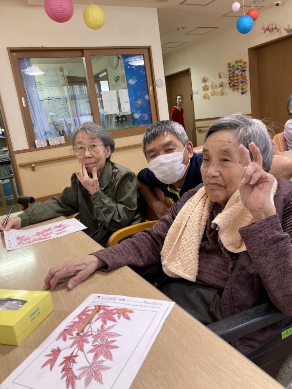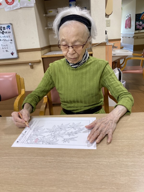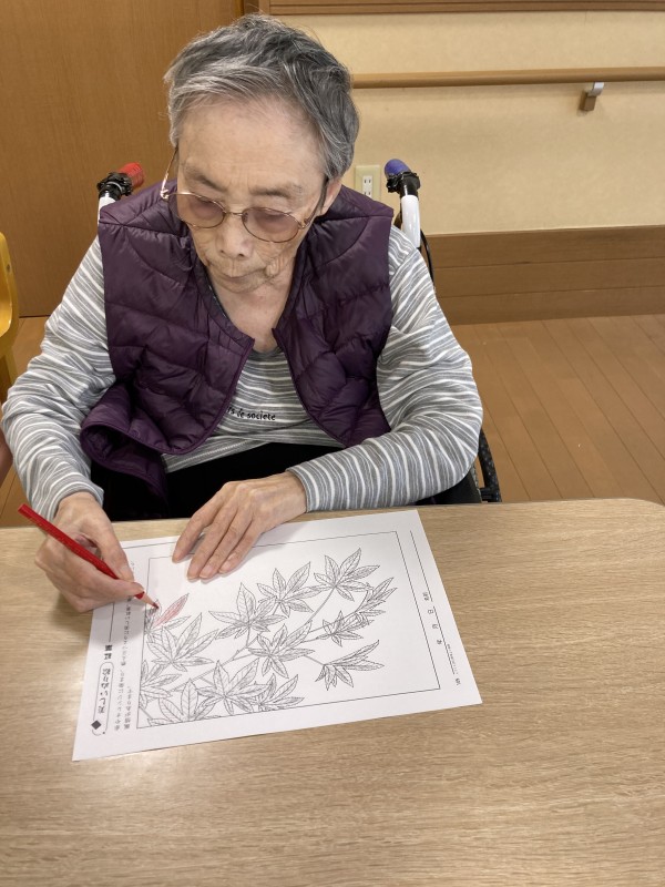 今回は、秋の紅葉塗り絵の様子です。