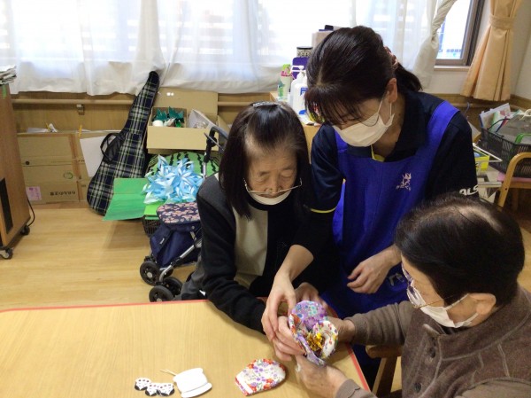 また中央のお花はご利用者様にも手縫いで縫っていただいたりもしましたよ!!
