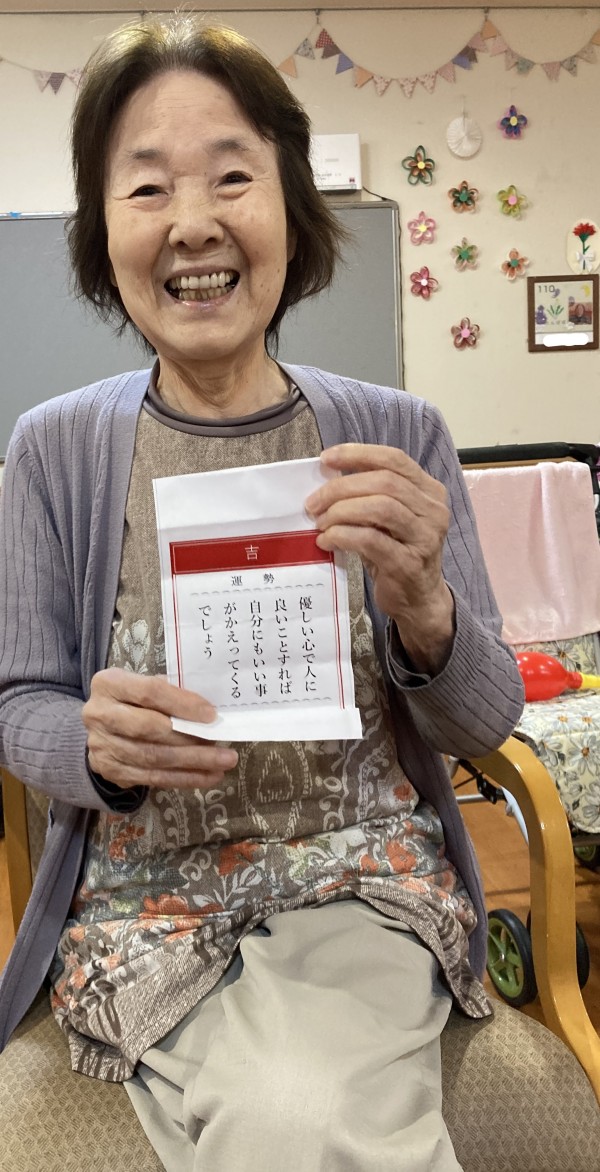たくさん歌を歌った後は一人一枚おみくじを引いて頂き秋祭りレクは幕を閉じました。