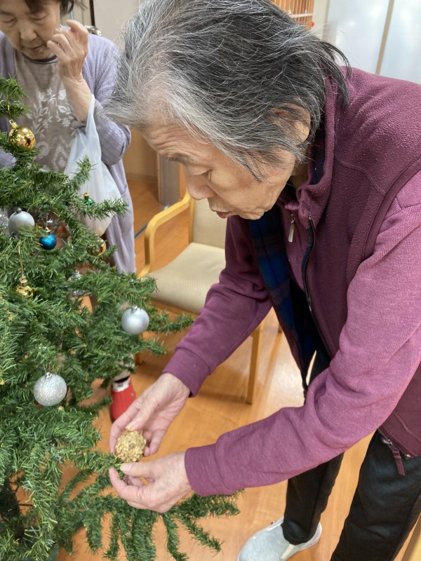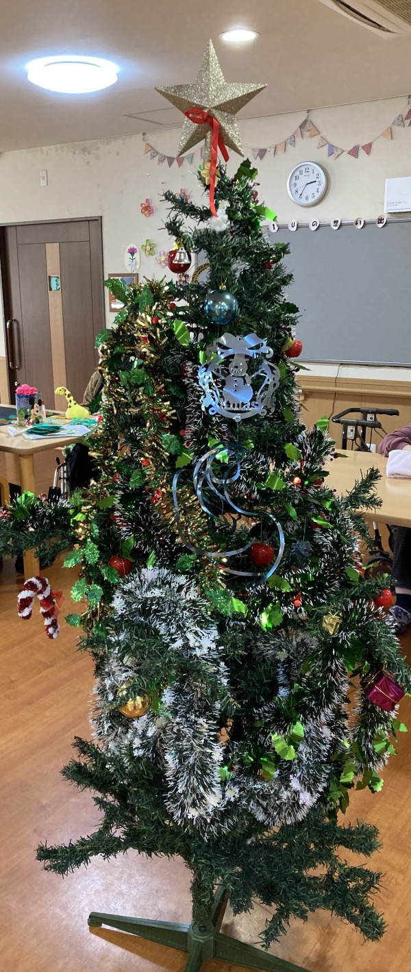 利用者さんたちにもお手伝い頂き素敵なツリーが完成しました。