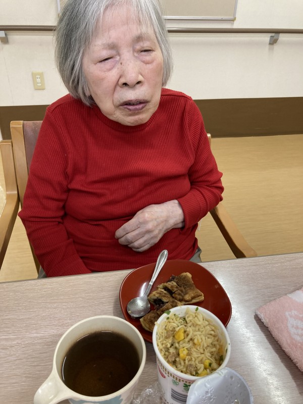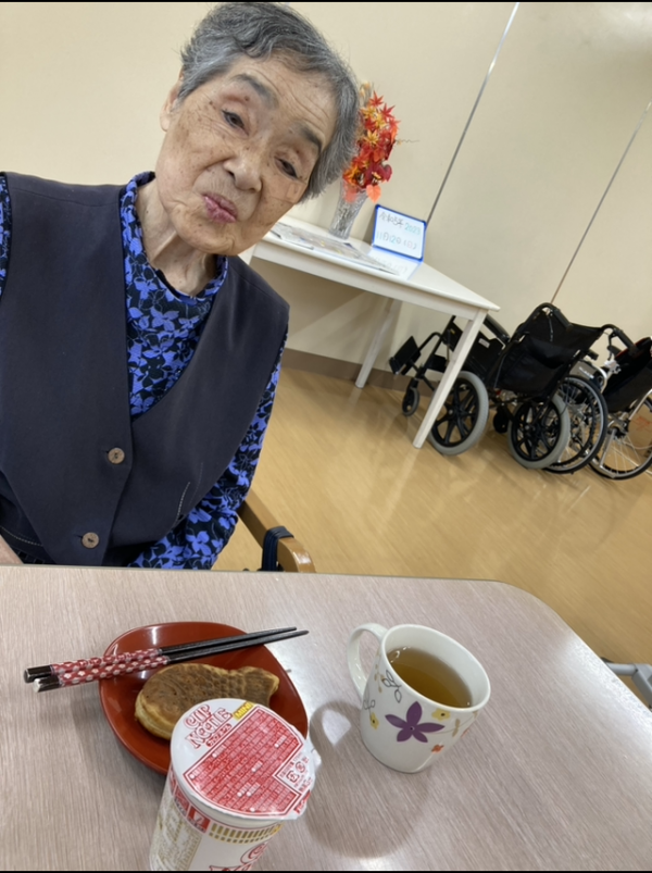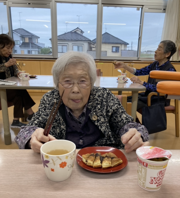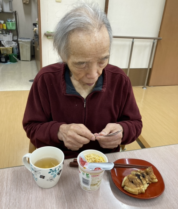 カップラーメンとたい焼きをおやつの時間に食べて頂きましたヽ(^o^)丿