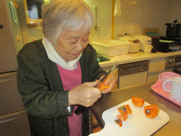 皆さん「あら、柿なんて久しぶり♪」と言いながら美味しそうに召し上がっていましたよ(^o^)