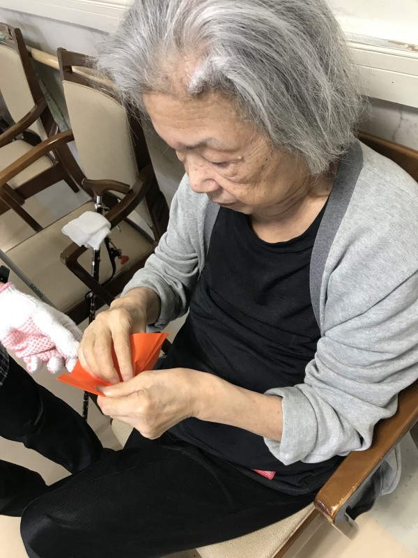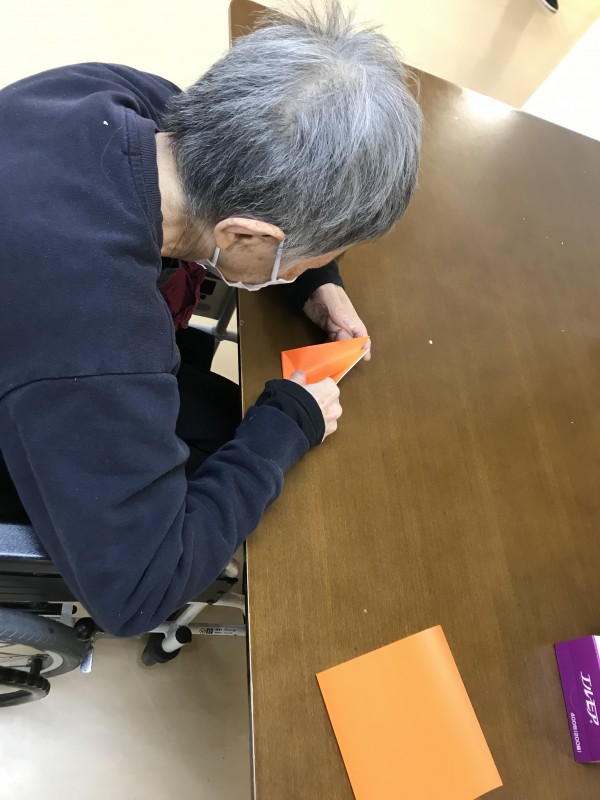 さて、今日は皆様との会話の流れで、折り紙を折ることになりました!