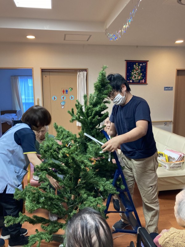 こんな時は 男性職員の出番です!重いツリーも軽々と組み立ててくれます