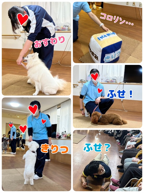 うちのケアリーダーも、入居者様方の「ふせ!」に応えてますね、お上手です(笑)