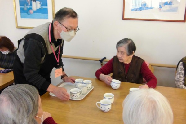 午後のお茶レクの時間には、コーヒーとお菓子の提供を手伝っていただきました。