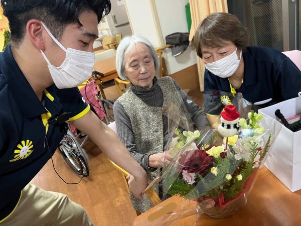 ご家族様からのクリスマスプレゼントと米寿のお祝いに笑顔が溢れるマダムなのでした。
