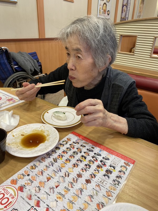 なかなか外食に行けない利用者様等お寿司を食べに行けると聞いて、